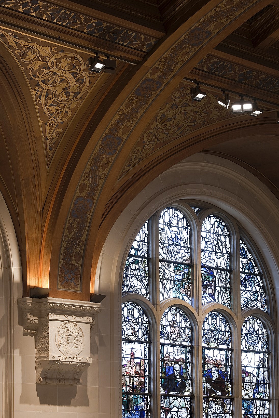 Built in 1913 in Neo-Renaissance style, the Peace Palace (Vredespaleis) in The Hague is home to the International Court of Justice as the principal judicial organ of the United Nations.Its new LED lighting in the large courtroom integrates subtly with the historic architecture, adding formidable lighting effects. The historic chandeliers were kept for the purpose of heritage conservation and as prominent eye-catchers.The brilliant light on the tables, images and other artwork, however, results from LED spotlights discreetly mounted on the ceiling. Parscoop ceiling washlights also illuminate the ceiling with dynamic effect. |