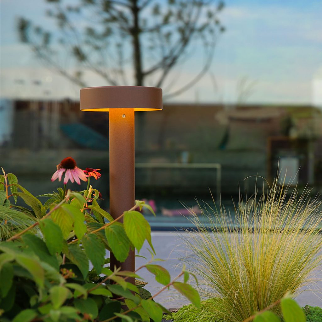 The light source at the top of the bollard is shielded by a circular flange for a total cut-off effect. A solution that provides non-intrusive lighting, designed for maximum integration with the environment. The emitted light highlights the tapered shape of the lamp body and circularly illuminates the underlying area.