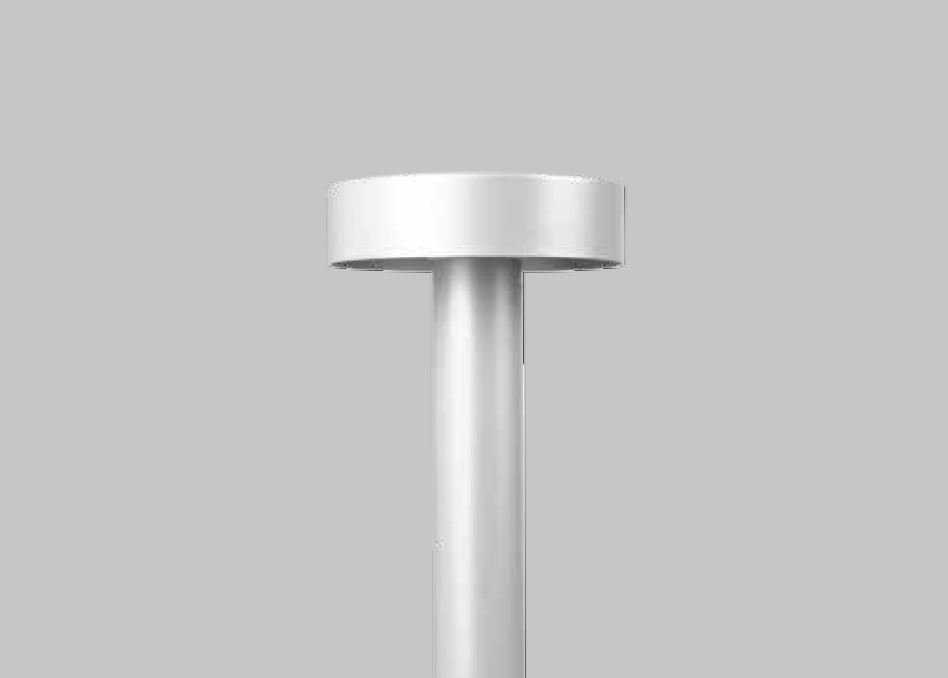 볼라드 상단에 위치한 광원은 원형 플랜지에 의해 완전히 차단되어 빛이 외부로 퍼지는 것을 방지합니다. 이 솔루션은 환경과 완벽하게 통합되며, 방출된 빛은 램프 몸체의 가늘어지는 형태를 강조하고 그 아래 영역을 원형으로 고르게 비춰줍니다.