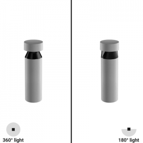 The Buzzer Pro is a bollard light designed for footpaths and driveways. It illuminates the ground with either a 180° or 360° aperture, specifically engineered to prevent upward light dispersion. Thanks to its special optics, it offers wide, even light diffusion, ensuring there are no shadow zones at the base of the fixture.