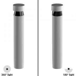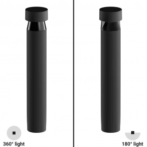 The Buzzer Pro is a bollard light designed for footpaths and driveways. It illuminates the ground with either a 180° or 360° aperture, specifically engineered to prevent upward light dispersion. Thanks to its special optics, it offers wide, even light diffusion, ensuring there are no shadow zones at the base of the fixture.