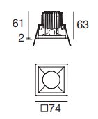 A complete line of square recessed spotlights characterised by IP44 protection index and polycarbonate flange. Cob44 available with round or square flange, fixed or tilting optical assembly and two power levels.