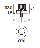 COB44_RJ is a directional spotlight that is the result of long specific research activities aimed at attaining outstanding performances combined with very simple installation. The round structure houses a reflecting aluminium optical compartment from which flows a high-quality light beam emitted by an arrayLED source. Also available in the driverless version, to be directly connected to the mains, the downlight has an IP44 protection rating. COB44_RJ is particularly suitable for public spaces such as offices and shops and for private homes.