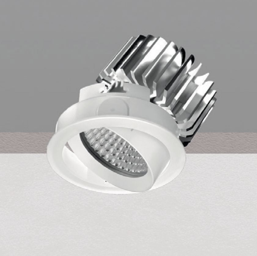 COB44_RJ is a directional spotlight that is the result of long specific research activities aimed at attaining outstanding performances combined with very simple installation. The round structure houses a reflecting aluminium optical compartment from which flows a high-quality light beam emitted by an arrayLED source. Also available in the driverless version, to be directly connected to the mains, the downlight has an IP44 protection rating. COB44_RJ is particularly suitable for public spaces such as offices and shops and for private homes.