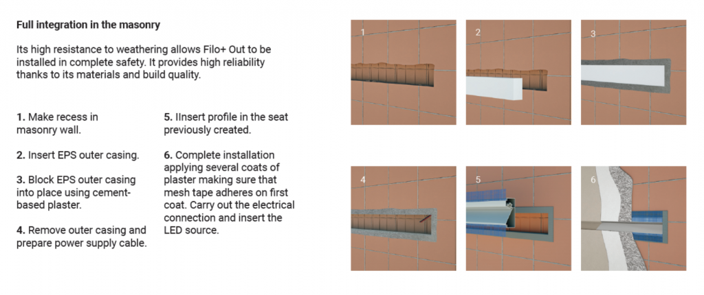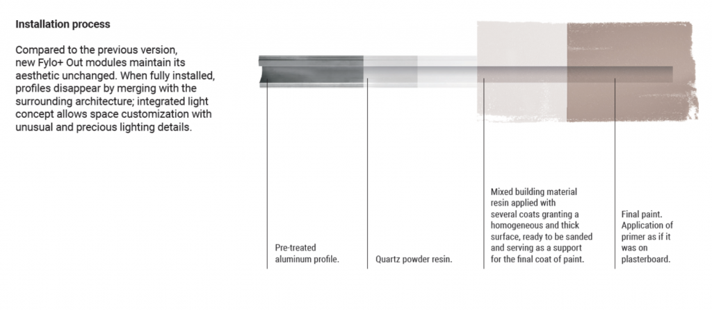 Fylo+ Out Recessed는 매립형 조명 시스템으로, 조명이 벽면이나 바닥에 깔끔하게 내장되어 외부에서 시각적인 방해 없이 조명을 제공하며 IP67 보호 등급을 갖추고 있어 완전 방수방진 기능을 제공합니다. 이 시스템은 세련된 디자인과 기능성을 강조하며, 외부 공간에 적합한 내구성을 제공합니다.
