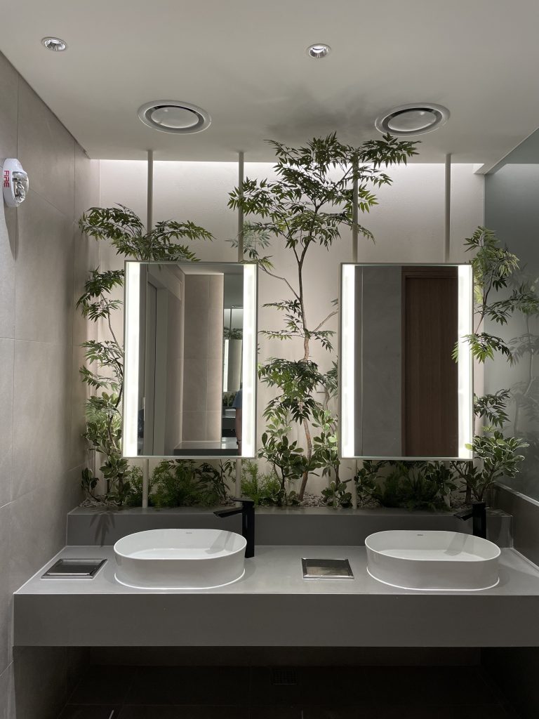 전반조도가 필요한 곳은 바리솔을 통한 확산조명을 기본 레이어로, 시각적으로 눈에 덜띄도록 배치한 스팟라이트를 통해 제품을 보여줄 수 있는 적정한 밝기를 만들어 주었다.