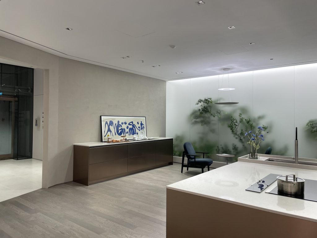 건축조명과 더불어 공간별 실 사용을 연출한 공간 구성에 맞도록 적절한 장식조명들을 배치하여, 지나치게 쇼룸의 이미지에 매이지 않은 자연스러운 라이프스타일이 드러나는 공간을 만들 수 있도록 하였다.