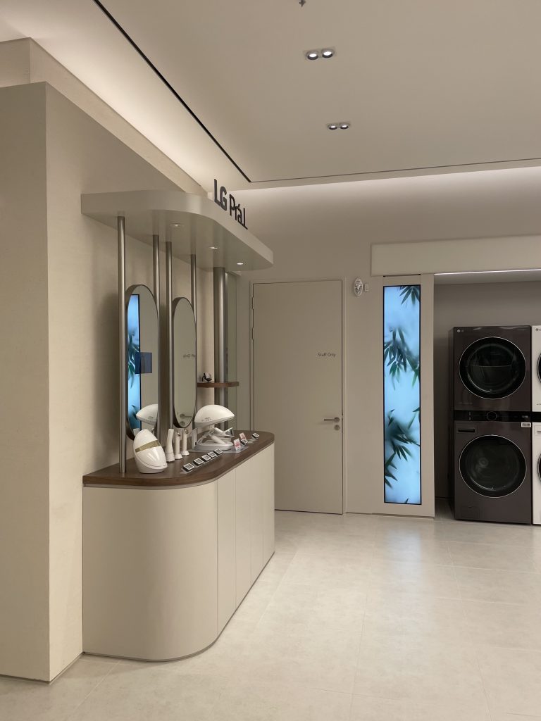 2500sqm의 매장 전체를 전면적으로 바꾸는 공사로, 일반적인 전자제품 매장의 느낌이 아닌 제품을 보여주는 갤러리를 디자인 컨셉으로 잡고 출발하였다. 이에 따라 색온도와 연출 방식에서 기존의 매장과는 다른 방향으로 접근하게 되었고 5000-6500K를 주로 사용하는 일반 매장과 달리 3000K를 기본 색온도로, 동선과 일반제품, 메인제품등에서 조도의 톤에 위계Hierarchy 를 두고 설정하였다.