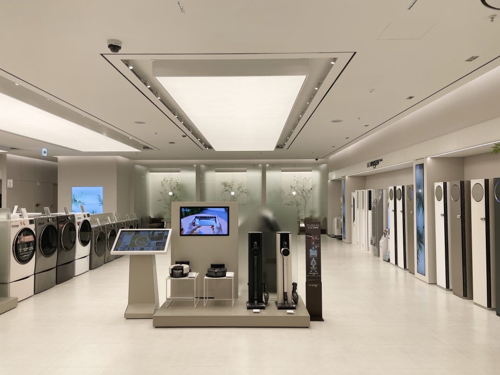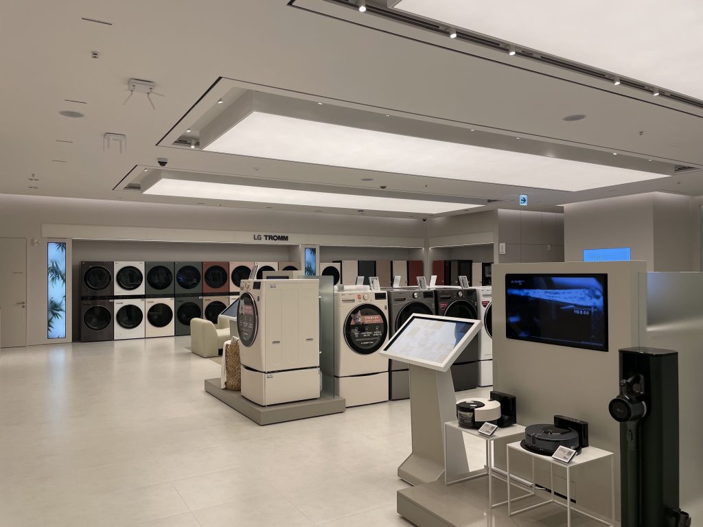 강남의 핵심 위치에서 LG전자의 간판 매장의 역할을 하고 있는 강남 플래그쉽 스토어의 전체 조명의 설계에서 납품까지 이루어졌다.