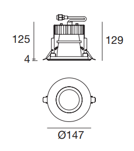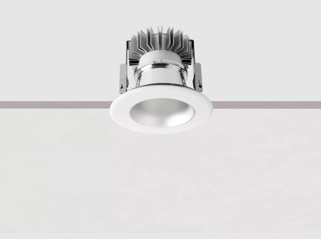 LV44_RD is a recessed LED spotlight with an IP44 rating, making it safe for use in humid environments such as indoor bathrooms. It is made with a polyester powder-coated aluminum body and an ultra-clear transparent glass diffuser, providing excellent durability. It uses an integrated topLED 10W and supports Dynamic White color temperature.