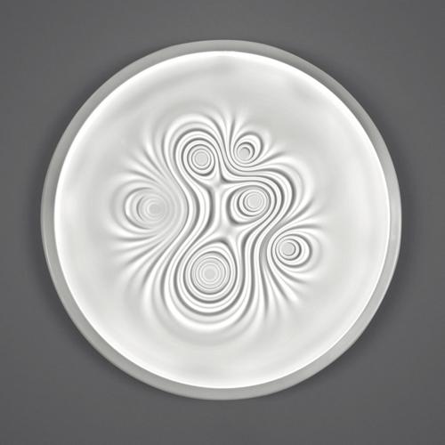 | Design by Ross Lovegrove 2012Generated from advanced parametric scripting the vortices act as light capturing forms, emitting a glowing light phenomena from a ring of LEDs located in its circumference. Intended for mounting in either singular or multiple clusters across walls or ceilings |