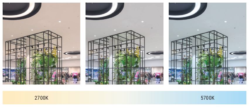 The Dynamic white modules, combined with the new, specifically developed management system, allow the mixture of whites from warm white and cold white. With a single product, it is therefore possible to reproduce all the colour temperatures from 2700K to 5700K, maintaining the same luminous flow. Recent studies on the circadian cycles have shown how the temperature variations of natural light. form dawn to dusk, influence the well-being of humans.