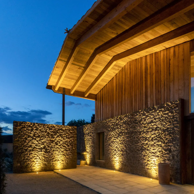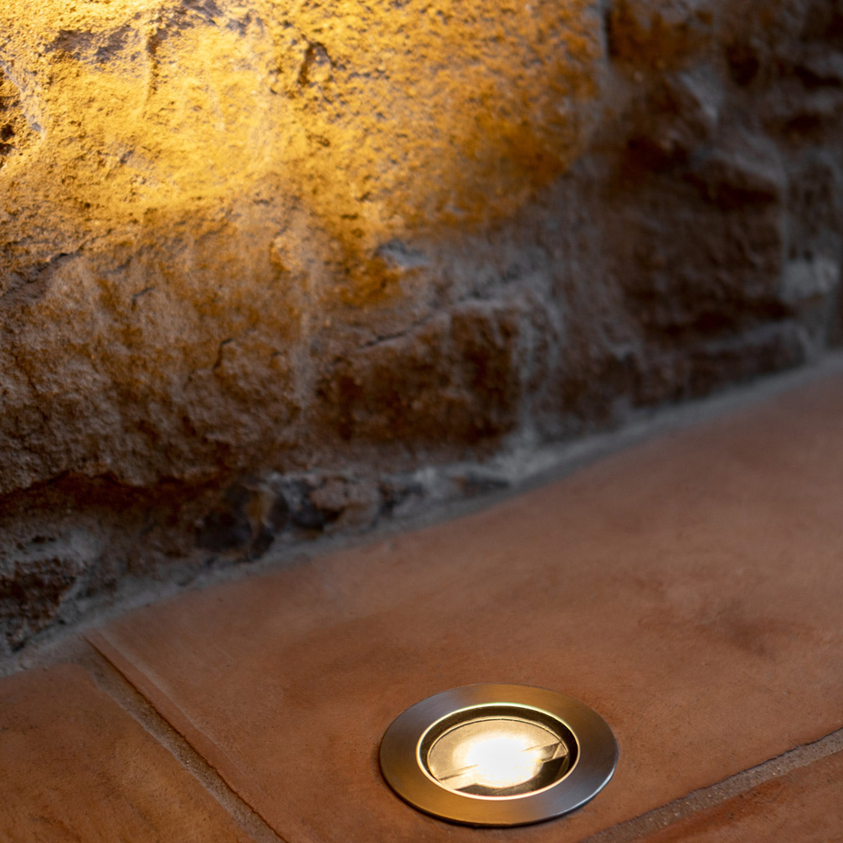 Orma_AJ is more than just a wall lamp – it’s a versatile solution that can also be used as a steplight. With its aluminum body and AISI 316L stainless steel flange, it offers optimal strength and durability. Installation with a flush-mounted flange ensures a clean and discreet look. Additionally, its adjustable tilt capability from -20° to +20° allows you to adapt the lighting to specific environmental needs.