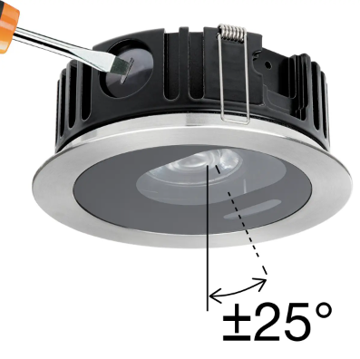 Easily swivelled by turning the special screw with a flat-blade screwdriver, without having to open the lamp body.