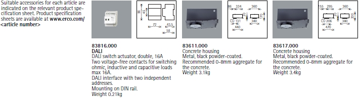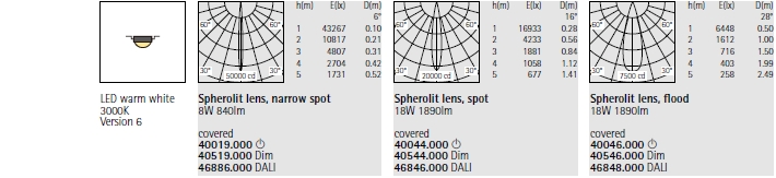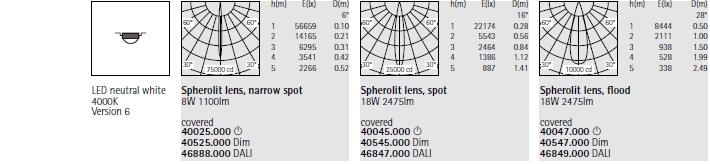 1 ERCO Spherolit lens 2 ERCO LED module 3 Flush or regressed cassette |