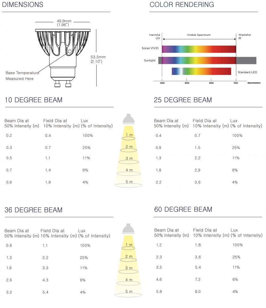 소라 HL Brilliant 램프는 기존의 VIVID램프보다 보다 밝은 밝기를 구현한 램프입니다. SORAA의 CRI90 으로 VIVID보다는 낮은 연색성이나 동일한 빔각도와 보다 높은 루멘 아웃풋을 저렴한 비용으로 구현할 수 있는 제품입니다. 전원공급장치가 내장되어 별도의 컨버터 없이 220V에서 바로 사용가능하고, 디밍 기능을 갖추고 있어 간단한 조광기와 조합으로 밝기 조절이 가능합니다.