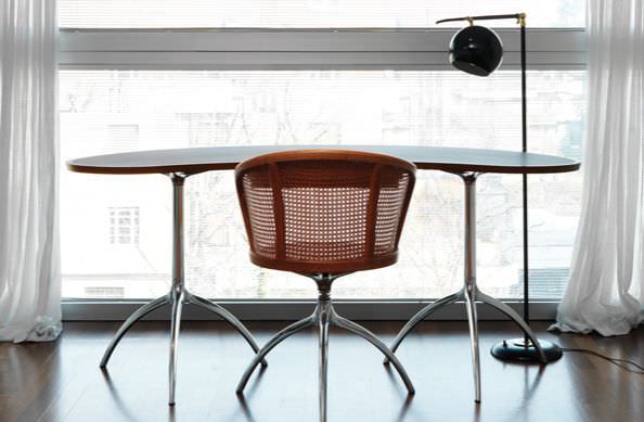 Material: die-cast aluminium, veneered plywood