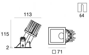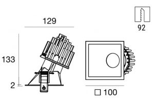 Warp_QY is a square recessed spotlight with a slim flange that harmonizes with the ceiling: its shape has been specially designed to optimize light efficiency while ensuring excellent visual comfort. It is asymmetric, tilted by 25°, allowing for uniform light distribution on the lateral surfaces.