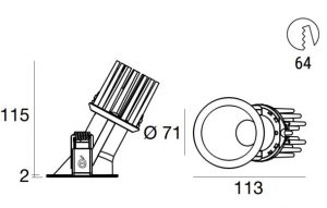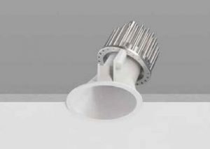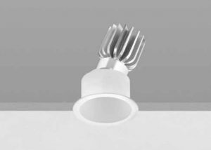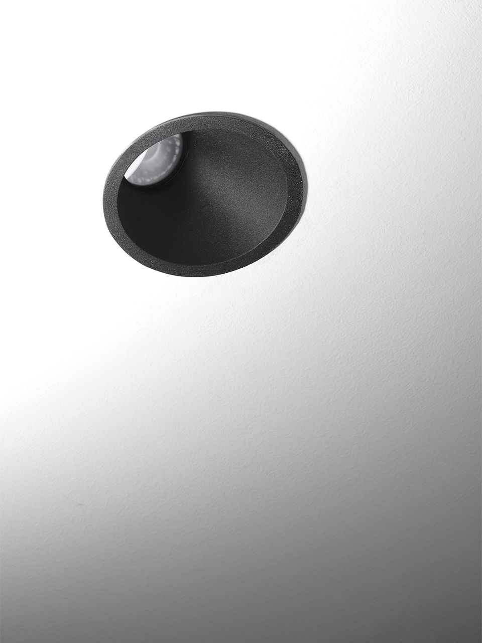 Warp RY is a recessed spotlight with a slim flange that harmonizes with the ceiling: its shape has been specially designed to optimize light efficiency while ensuring excellent visual comfort. It is asymmetric, tilted by 25°, allowing for uniform light distribution on the lateral surfaces.