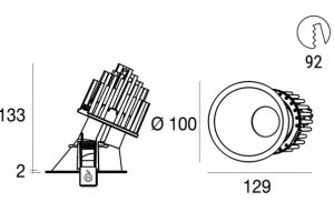 Warp RY는 천장과 자연스럽게 조화를 이루는 슬림한 플랜지를 갖춘 매립형 스포트라이트입니다. 이 제품의 형태는 빛 효율성을 최적화하면서 뛰어난 시각적 편안함을 제공하도록 특별히 설계되었습니다. 비대칭으로 25º 기울어져 있어 측면 표면에 균일한 빛 분포를 제공합니다.