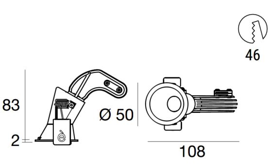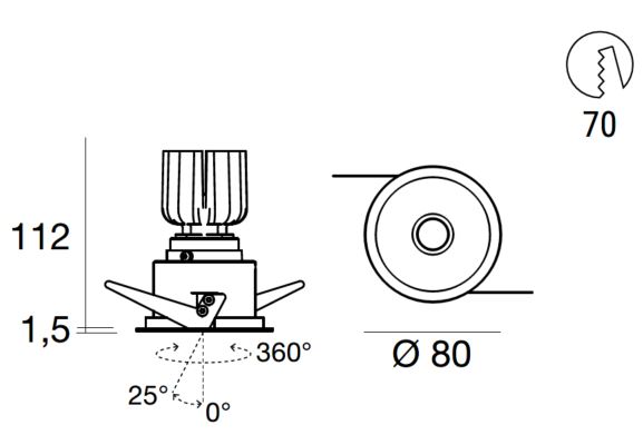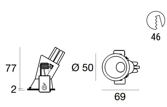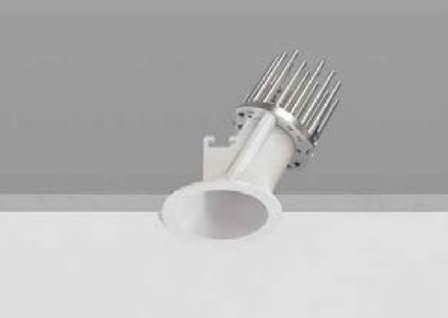 Warp RY is a recessed spotlight with a slim flange that harmonizes with the ceiling: its shape has been specially designed to optimize light efficiency while ensuring excellent visual comfort. It is asymmetric, tilted by 25°, allowing for uniform light distribution on the lateral surfaces.